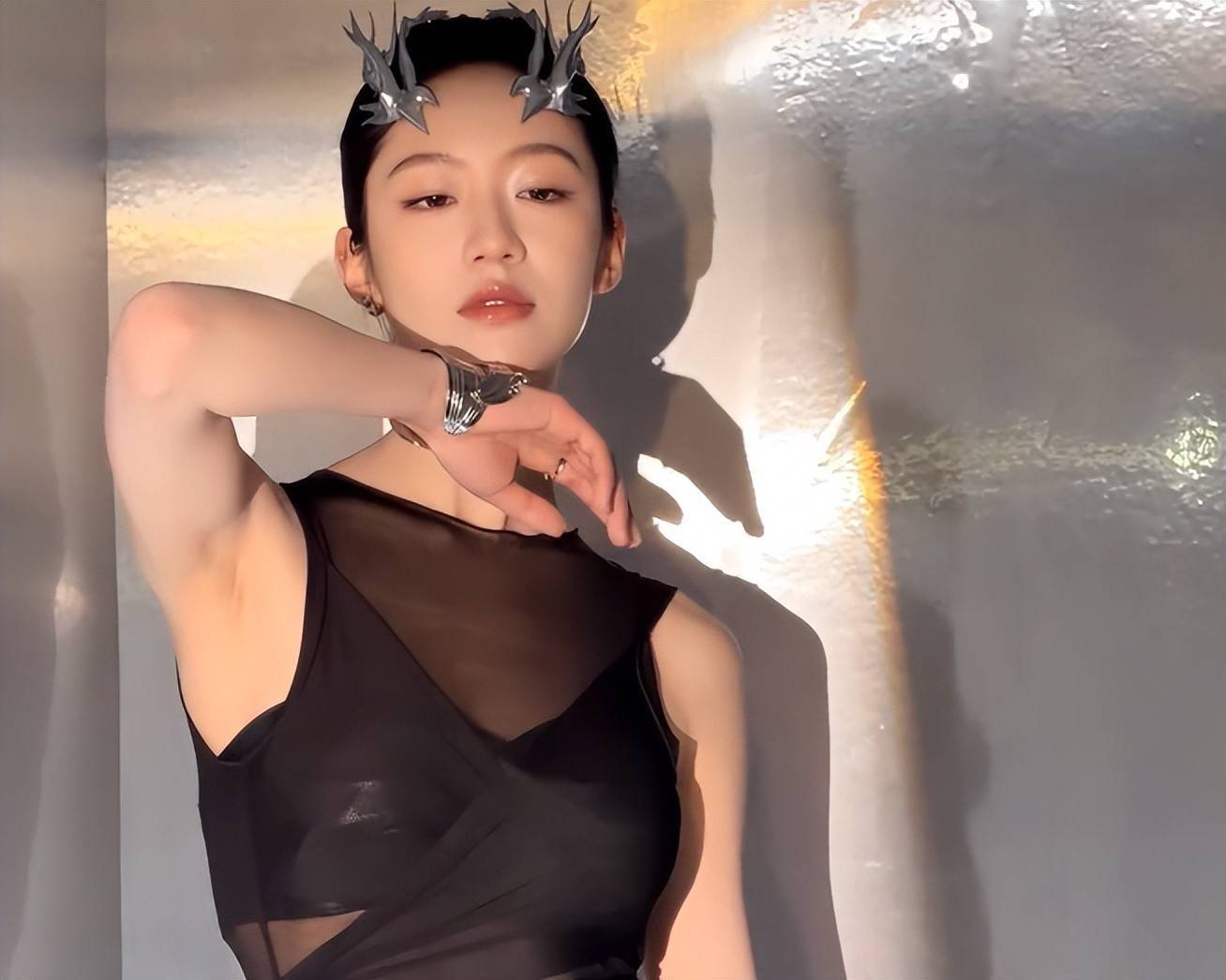 这次赵昭仪的造型非常大胆,她身穿银色挂脖碎钻裙,液态金属面料给人一种非常高级的感觉,再加上高挑的身高,真的是美出新高度,但细心的网友却发现不对劲,因为赵昭仪的工作室发出她的红毯造型图,当时她头戴“龙角”,可是到走红毯的时候,“龙角”却不见了。