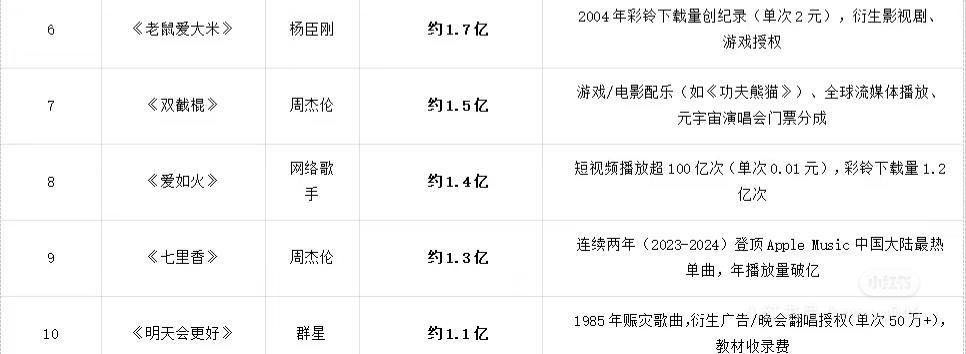 今天就来盘点下华语乐坛“最赚钱”的10首歌。